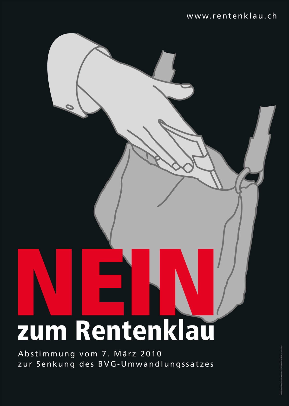 Plakat zur Abstimmung über die Senkung des Umwandlungssatzes in der 2. Säule.